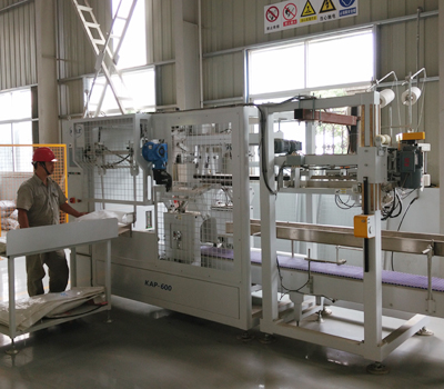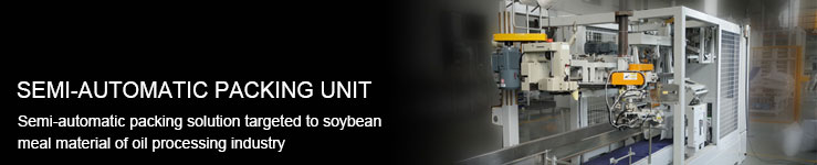 Aiming at the packing needs of soybean meal material in oil processing industry, by referring to similar applications of the foreign counterparts and taking the top-grade products of global packing industry as benchmark,the semi-automatic packing unit made by Kaiwei Company with its utmost efforts is characterized by small footprint, stable and reliable operation etc. Followed by manual bag handling and opening, the subsequent actions such as bag attaching, bag opening trimming, heavy bag compaction, bag clamping and transfer, edge folding, label conveying, bag stitching etc. are automatically implemented by the semi-automatic packing unit. |